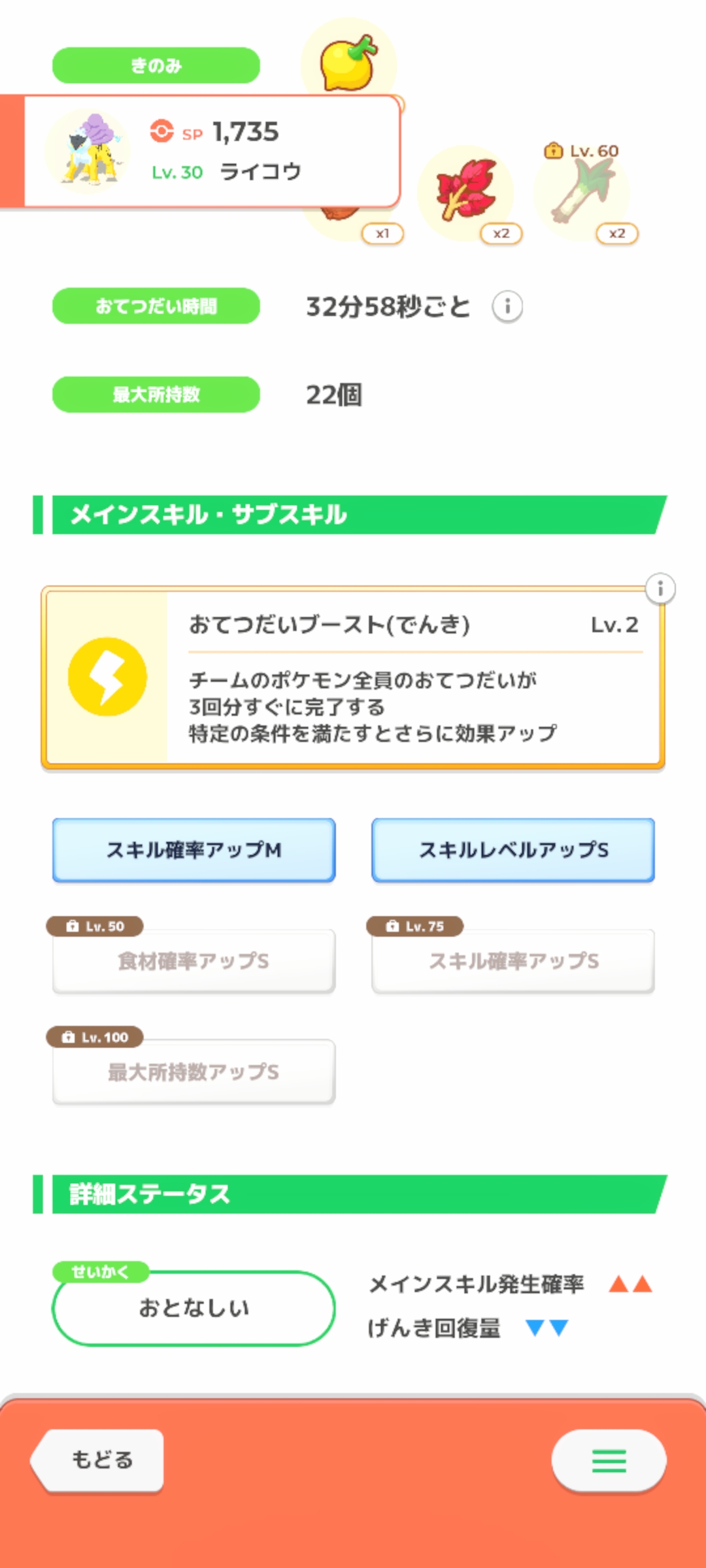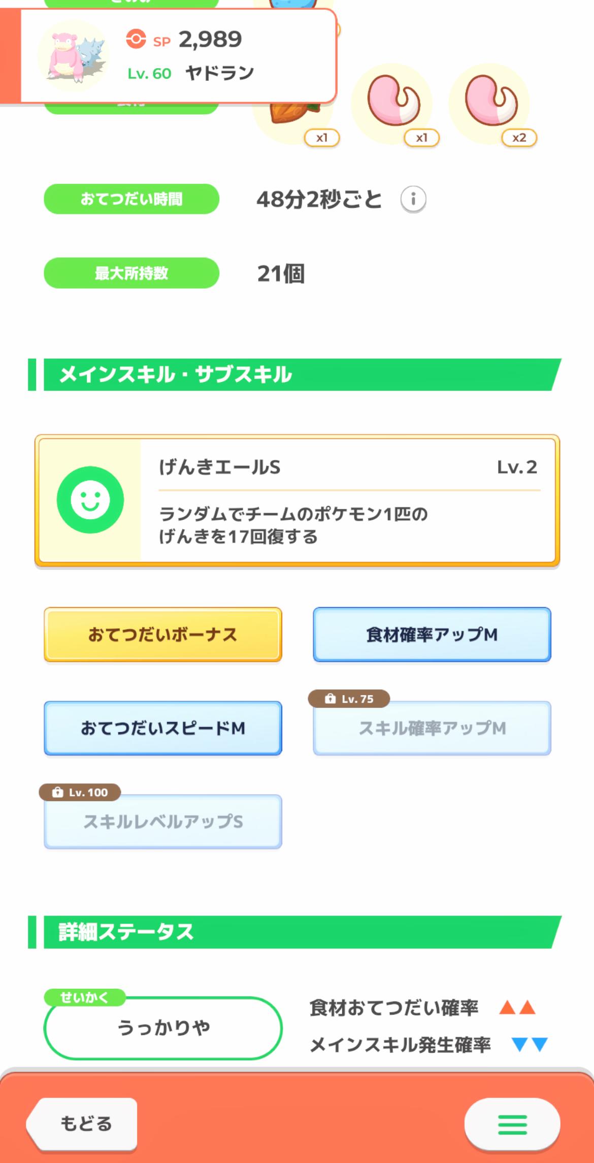 食材+1ボーナス出た時はキレかけたがきのみ型の落とす食材とマッチしてちょうどいい感じにサラダ作りできたので許した