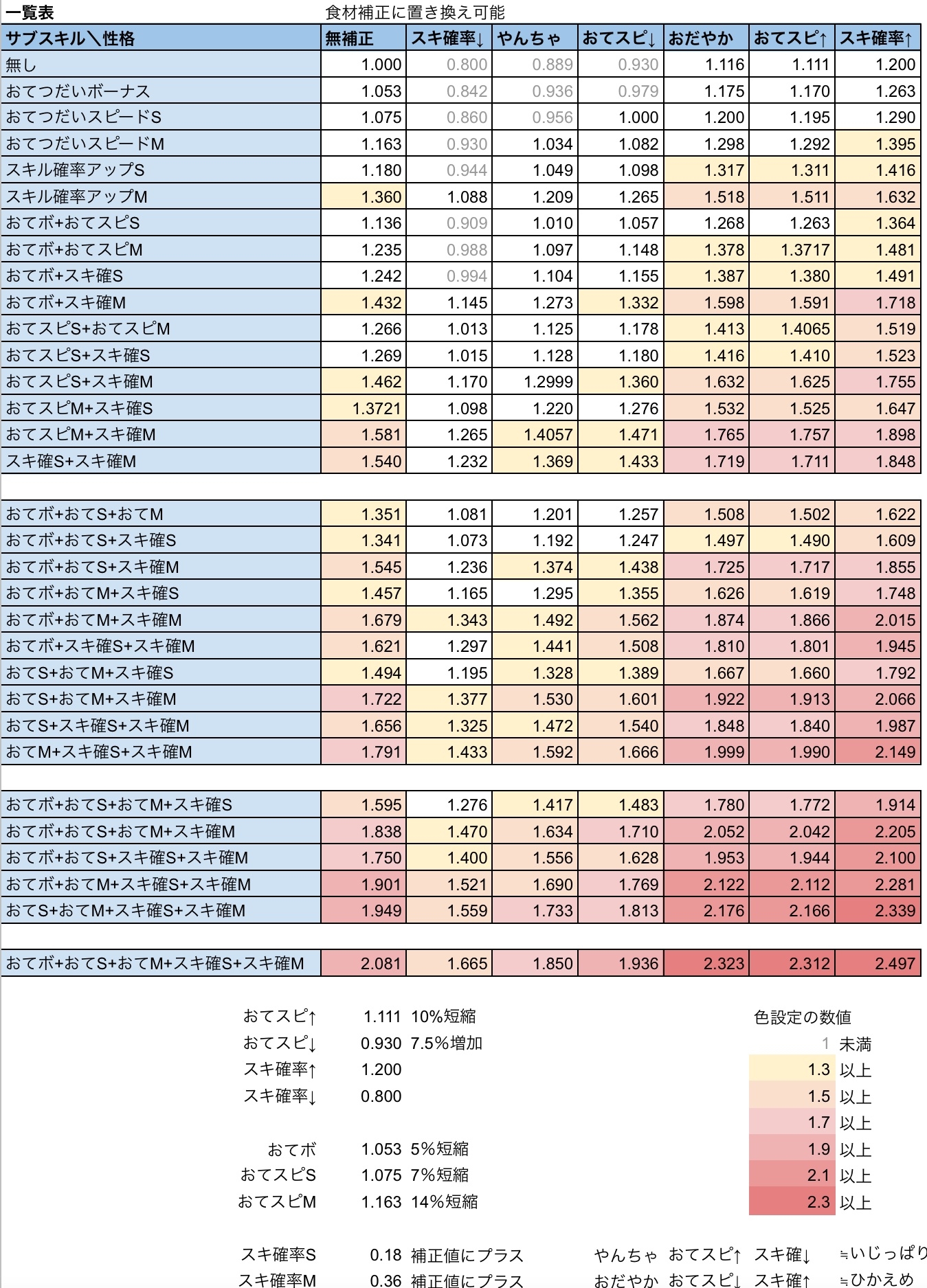 実際の性能は所持数や食材率等も影響するからあくまで簡易評価ゴン