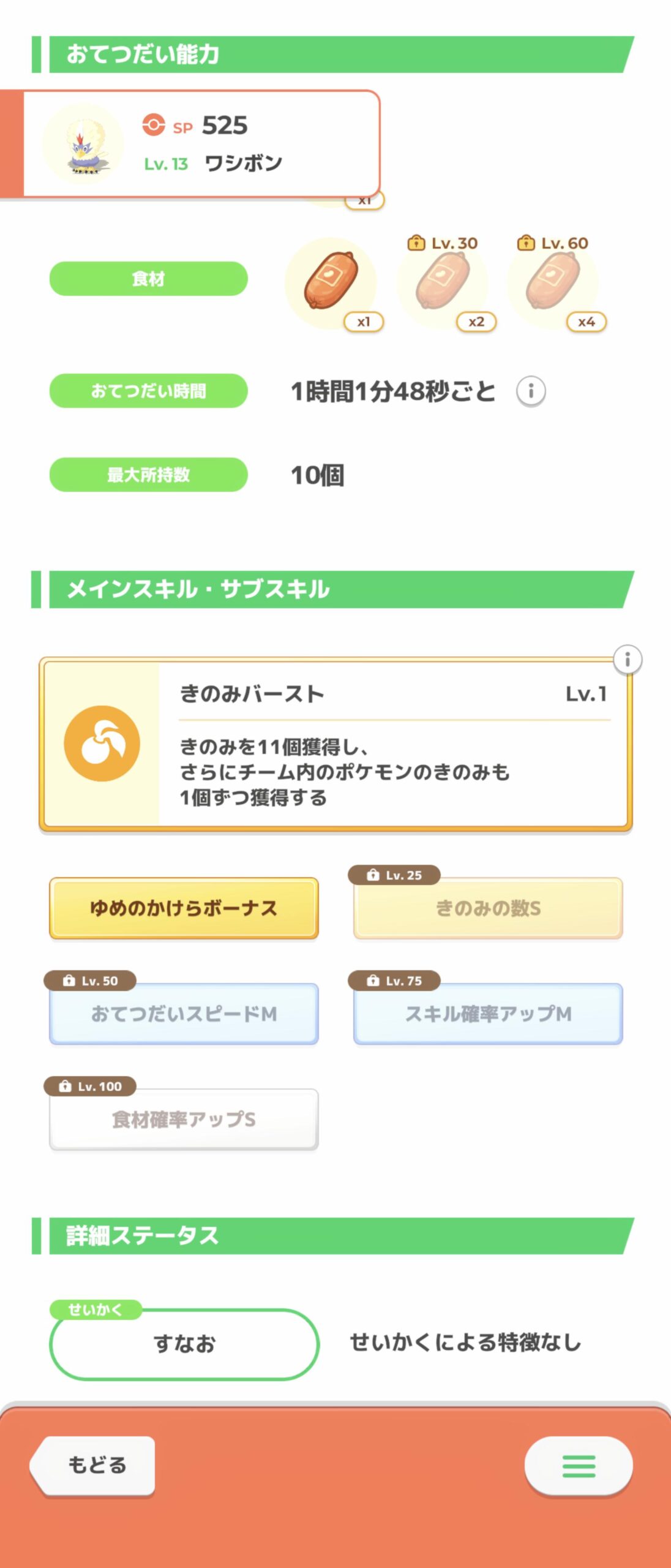 食材ゲット自体の強さは置いといてストック前ならこういうポケモンがいても良いよねって性能はしてた