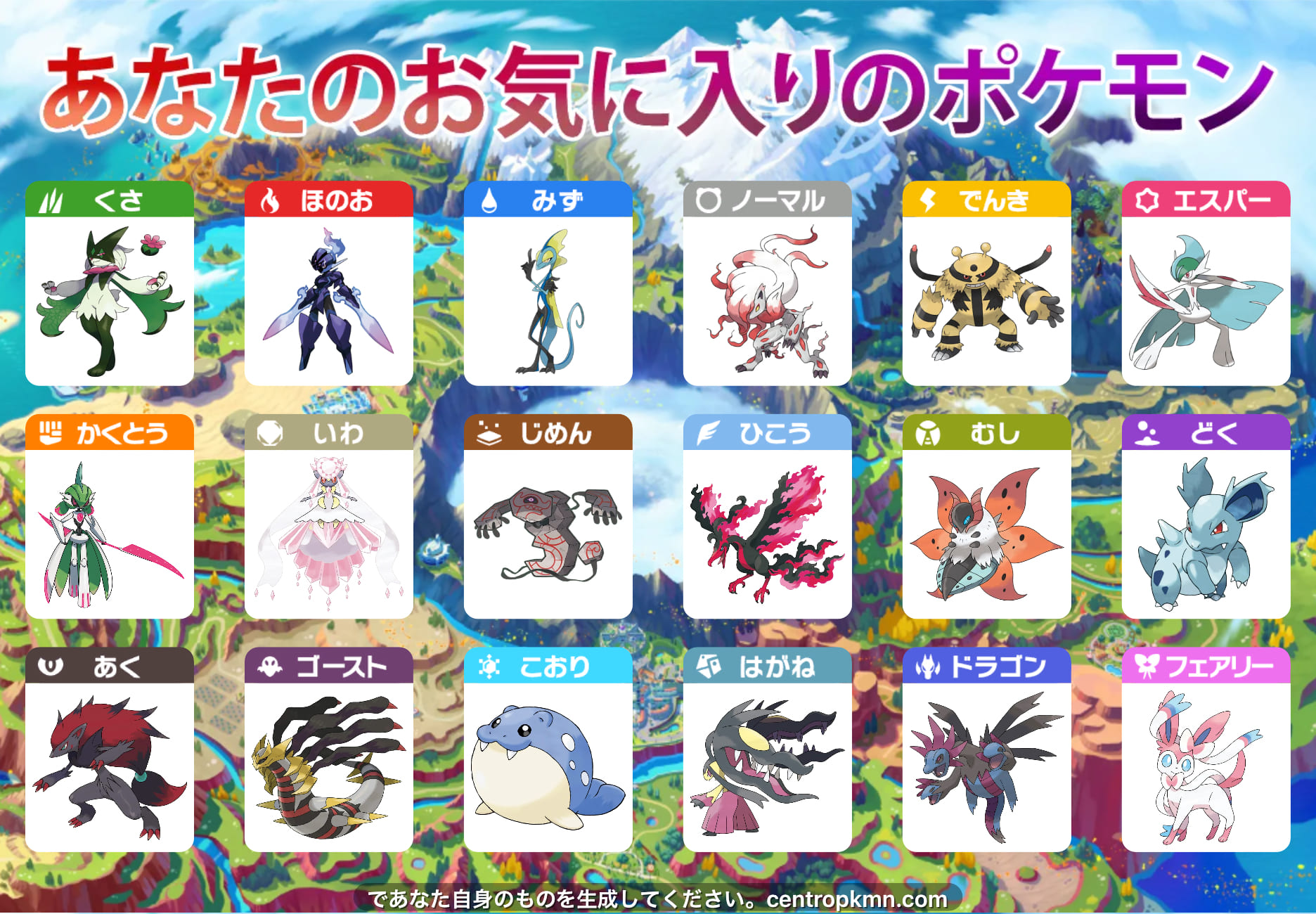 https://www.centropkmn.com/favoritetypes図鑑番号は公式のポケモン図鑑からhttps://zukan.pokemon.co.jp/画像は俺のデッキです対戦よろしくお願いします
